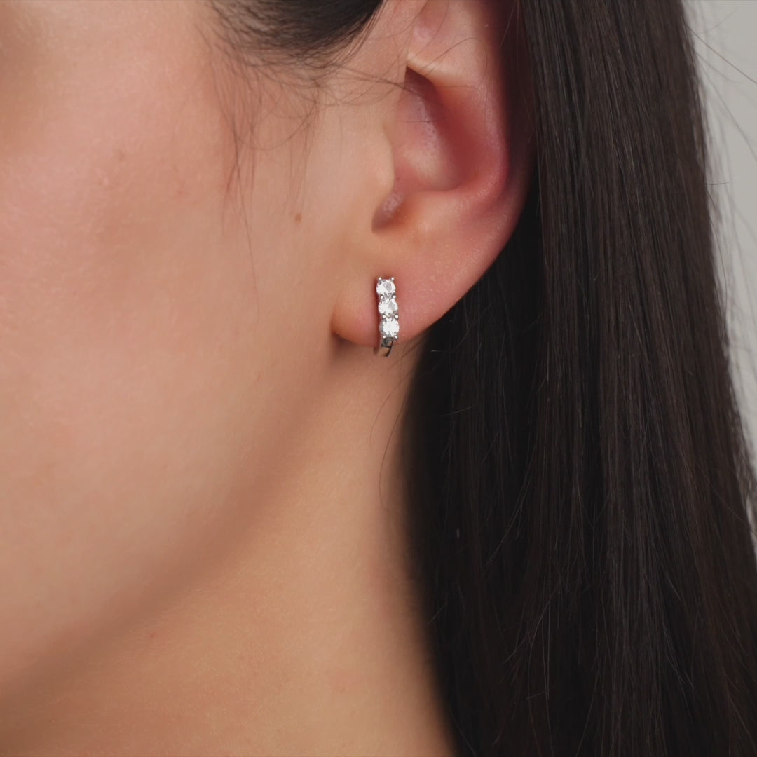 Petites créoles FREJA en argent 925 millièmes rhodié serties de pierres d'oxyde de zirconium. Fabriquées traditionnellement par notre équipe de maîtres artisans joailliers, exclusivement à partir de métaux précieux d’origine éthique et de pierres de haute qualité. Conçues par Noora pour s'ajuster parfaitement et confortablement sur les piercings du lobe de l'oreille. Vendues par paires.