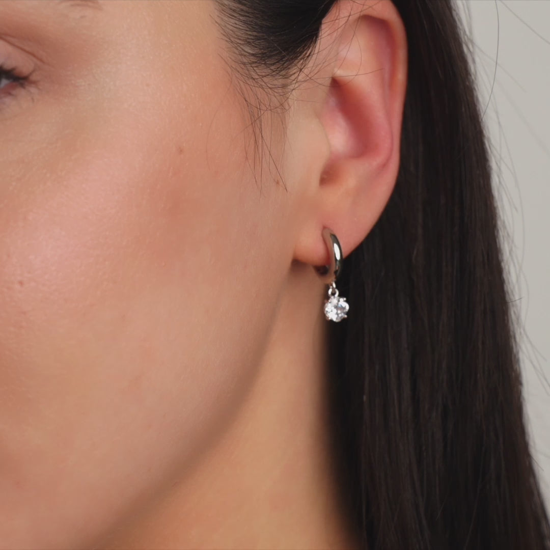 Petites créoles NANA en argent 925 millièmes rhodié avec des pierres d'oxyde de zirconium pendantes en forme de coussin. Fabriquées traditionnellement par notre équipe de maîtres artisans joailliers, exclusivement à partir de métaux précieux d’origine éthique et de pierres de haute qualité. Conçues par Noora pour s'ajuster parfaitement et confortablement sur les piercings du lobe et du cartilage de l'oreille. Vendues par paires.